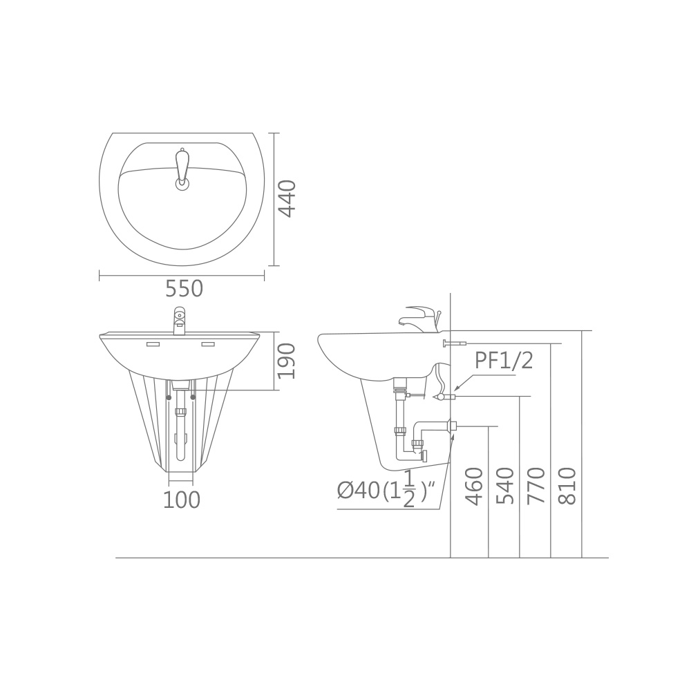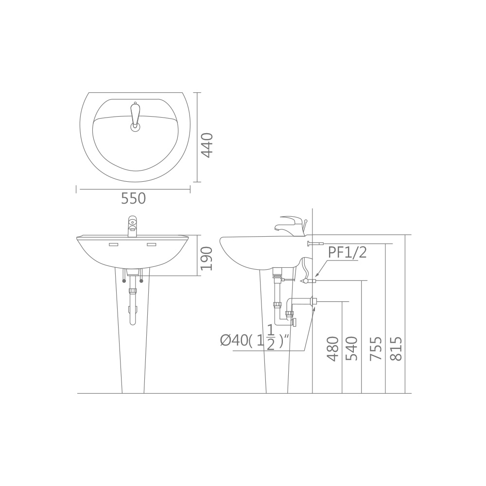 BS-1161:短瓷腳面盆組