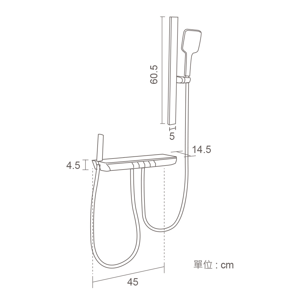 產品內容 : 手持花灑、滑桿、下出水、側小手持噴頭